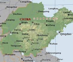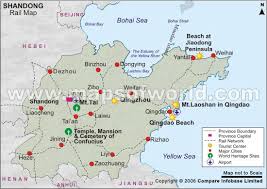 Map of Shandong province showing the areas annexed by Germany and Britain prior to the signing of the Treaty of Versailles 1919.